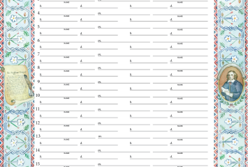 This blank family register chart is designed to record up to 16 generations of a specific lineage. Generally, your earliest ancestor is #1 and each subsequent line is the next generation. The very top line can be yourself or the ancestor you are tracing back to. Have fun with it!